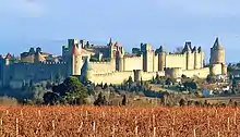 — (Eugène Viollet-le-Duc, La Cité de Carcassonne, 1888)La ville avait la réputation d’être imprenable ; son château s’élevait à l’est et la ceinture de murailles qui entourait la cité venait s’y attacher […]