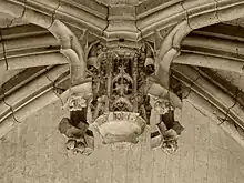 - Anglais : keystone (en), boss (en), roof boss (en)