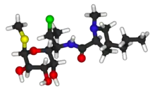 - (Chimie) (Pharmacologie) Antibiotique de la famille des lincosamides, principalement actifs sur les germes intracellulaires et certaines bactéries gram négatif.