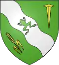 - De sinople à la bande ondée d’argent chargée d’une grenouille de sinople, accompagnée en chef d’un clou de la Passion d’or et en pointe d’un épi de blé posé en bande du même, qui est de la commune de Foameix-Ornel de la Meuse → voir illustration « armoiries avec un clou de la Passion »