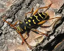 — (Clyte arqué- Plagionotus arcuatus, vertdeterre.com)Le clyte arqué (Plagionotus arcuatus) est un coléoptère noir strié de jaune le faisant ressembler de loin à une guêpe.