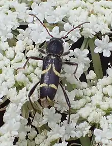 Longicorne : Le Clyte du nerprun (Corse). De retour de deux semaines en Corse voici un petit longicorne observé sur une inflorescence de carotte sauvage près de Sartène. Ce longicorne pourrait facilement être confondu avec d’autres espèces proches présentant également une coloration noire et jaune.