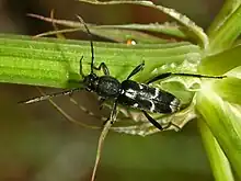- (Entomologie) Espèce de coléoptère d’Europe et du Proche-Orient, noir ou brun sombre rayé de blanc, dont la larve est xylophage.
