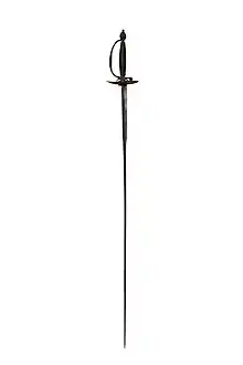 Colichemarde, avec le talon large de la lame en haut et la partie effilée en bas.