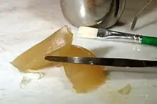 - Gélatine thixotrope fabriquée à partir de peaux de lapin ou d’autres animaux domestiques.