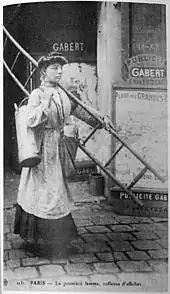 - Celle qui colle du papier peint sur les parois d’un appartement ou des affiches sur les murailles
