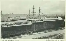 Le salut au drapeau dans la colonie pénitentiaire (1) de Belle-Île-en-Mer.