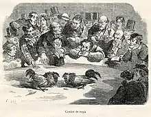 — (George Borrow, « Lavengro », chap. 4, traduit dev l'anglais, dans la Revue Britannique, tome 1, année 1851, Bruxelles : chez Méline, Cans & Cie, p. 655)Tout porte à croire que le combat de coqs serait apprécié par un plus grand public si les blessures des belligérants étaient moindres, comme en Thaïlande par exemple, où une nouvelle législation a été instaurée: […].