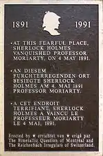 Plaque commémorative aux chutes du Reichenbach.