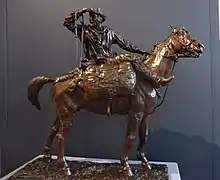 — (Louis Pergaud, L’Évasion de Kinkin, dans Les Rustiques, nouvelles villageoises, 1921)Non seulement, il ne porte que des sabots ou des espadrilles de toile, comme un contrebandier, mais aussi un éternel pantalon avachi, tout rapetassé au fond et aux genoux.