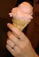 - Pâtisserie en forme de cône remplie de crème glacée.