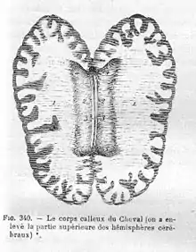 - (Anatomie) Longue et large bande de substance médullaire qui réunit les deux hémisphères du cerveau.