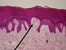 Micrographie d'un corpuscule de Meissner juste sous l'épiderme.