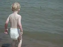 Cet enfant porte une couche-culotte jetable.