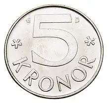 Une pièce de 5 couronnes suédoises datant de 1976.