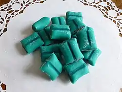 - (Confiserie) Confiserie lyonnaise à base de chocolat, pâte d’amande et ganache au curaçao.