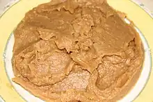 - (Cuisine) Sorte de confiture de châtaignes auquel était mêlées autrefois des brisures de marron glacé écrasées. Elle est servie seule ou accompagnée.