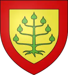 D’or au créquier arraché de sinople, à la bordure de gueules. (sens 2)