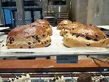 - (Belgique) (Boulangerie) Pain brioché au raisin sec.