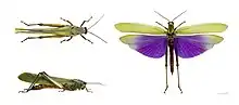 - (Entomologie) Insecte herbivore volant et sautant de la famille de l’ordre des orthoptères, appelé aussi caelifère.