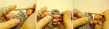 - (Couture) Aiguille à l’extrémité en forme de crochet, permettant de réaliser des vêtements à partir de fil, généralement de laine ou de coton.