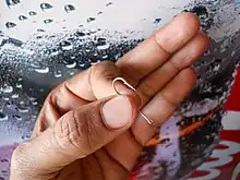 - Petit morceau de métal recourbé servant à accrocher ou attacher quelque chose.