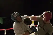- (Boxe) Coup de poing indirect, passant par les côtés, que donnent les boxeurs. Coup de poing où le bras replié frappe vers l’intérieur.