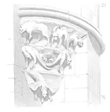 C'est encore la Bourgogne qui nous donne ici (21) un échantillon de son école de sculpteurs. Ce cul-de-lampe se compose de trois assises d'un seul bloc chacune ; dans de larges gorges se tordent ou rampent des animaux fantastiques, sculptés avec une énergie sauvage et une extrême finesse.