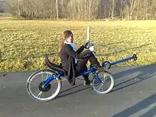 - Tricycle d’enfant, dirigé par les pieds et mû par la force des bras.
