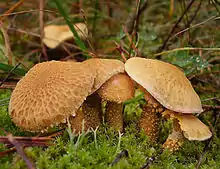 - (Mycologie) Espèce de petits champignons à lames, au chapeau convexe puis plat, floconneux, jaune safran ou orange ocre, et au pied cylindrique sans anneau et à armille (guêtre) granuleuse.