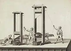 - Trancher la tête à une personne avec une épée, une hache (sur le billot), ou au moyen de la guillotine.