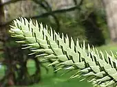 - (Familier) [1] (Botanique) Araucaria du Chili, arbre de l’ordre des Pinales au feuillage presque épineux, de nom scientifique Araucaria araucana.