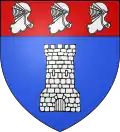 - D’azur à la tour crénelée de cinq pièces d’argent, maçonnée de sable, au chef cousu de gueules chargé de trois casques aussi d’argent tarés de profil, qui est de Saint-Bonnet-de-Mure → voir « casques de profil »
