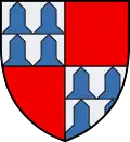 - Écartelé, au 1 et 4 de vair en pal de 2 pièces par tires, au 2 et 3 de gueules, qui est de la famille Von Cronberg → voir illustration « quartiers de vair en pal de 2 pièces »