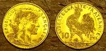 - (Numismatique) Pièce d’or de dix francs.