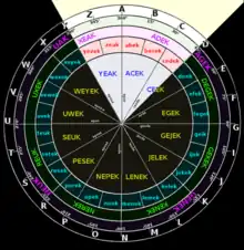 - Zone radiale entre D et Y (roue matricielle), la zone qui s’étend de D à Y dans le sens dextrorsum, c’est-à-dire la majeure partie du disque.