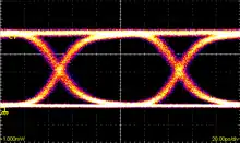 - (Électronique, Métrologie, Télécommunications) Oscillogramme représentant des données numériques issues d’un récepteur.