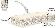 - (Vieilli) (Anatomie) Ensemble des deux tables de tissu compact dont les os du crâne sont formés.