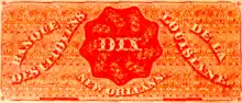 - (Billet de dix dollars) Du français dix, les billets émis par la Citizens State Bank à la Nouvelle-Orléans portaient le mot français « dix ».