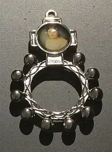 - (Christianisme) Anneau présentant une croix et dix grains servant à la prière.