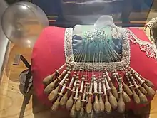 Le doulhi en verre est posé à gauche du carreau de dentellière.