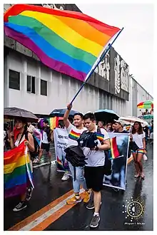- (Date à préciser) Terme composé de drapeau et de arc-en-ciel.