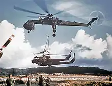 - Grue volante, hélicoptère pouvant emporter de lourde charge.