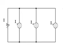 Ici, les 4 éléments du circuit sont en dérivation car les deux bornes de chaque élément sont reliées aux deux bornes de tous les autres éléments.