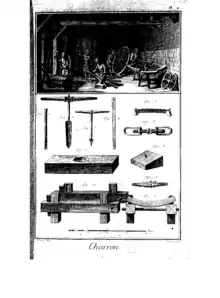 La figure 8 de cette planche de l'Encyclopédie présente un enrayoir, utilisé par un ouvrier dans la figure 3.