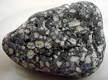 - (Pétrographie) Microdiorite quartzique de couleur bleue.