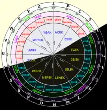 - Zone radiale entre E et T (roue matricielle), la zone qui s’étend de E à T dans le sens dextrorsum, c’est-à-dire la majeure partie du disque.