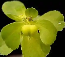 Fleurs et fruits immatures d'euphorbe réveille-matin.