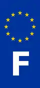 - Élément visuel obligatoire[1] de la plaque d'immatriculation européenne composé du drapeau européen et de l’indicatif du pays.