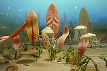 Vue d'artiste de la faune d'Édiacara apparue durant l'explosion d'Avalon.